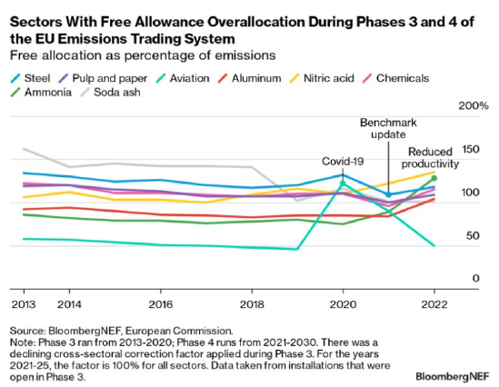 雖然工業(yè)和航空業(yè)占去年歐盟ETS所覆蓋排放的近一半,但由于免費(fèi)配額分配的存在,這些行業(yè)一直沒有受到碳定價(jià)的全面影響,從而破壞了歐盟EST的目的:推動(dòng)最低成本減排。