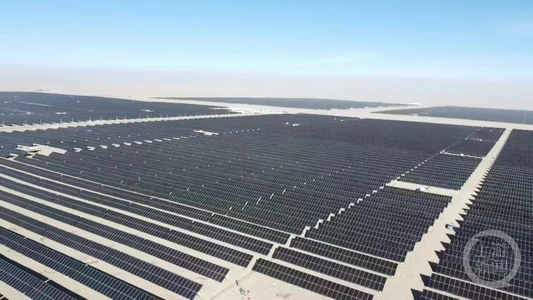 天合光能格爾木烏圖美仁鄉(xiāng)100MW光伏項(xiàng)目。 圖片來源/天合光能