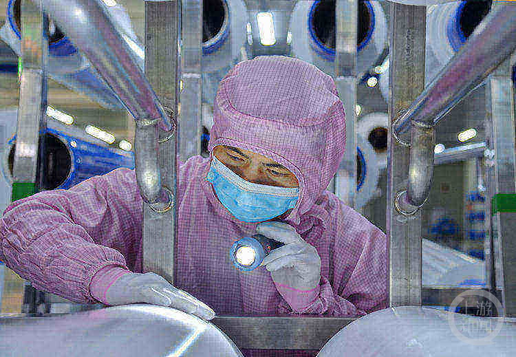 技術(shù)工人在對鋰電池隔膜進(jìn)行檢測。圖片來源/星源材質(zhì)
