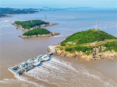 8月23日,浙江省舟山市岱山縣秀山島海域,全球最大兆瓦級潮流能發(fā)電機組LHD1600“奮進號”正在平穩(wěn)運行,源源不斷地將來自大海的清潔能源通過國家電網輸送到千家萬戶。