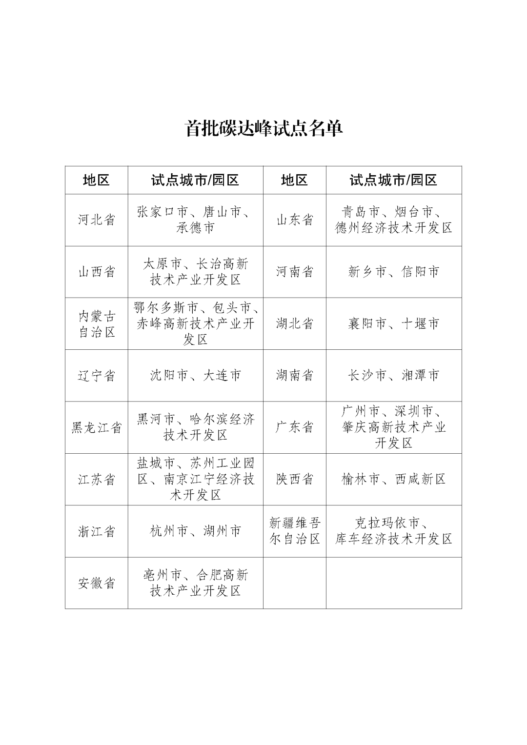 國家發(fā)展改革委辦公廳關(guān)于印發(fā)首批碳達(dá)峰試點名單的通知