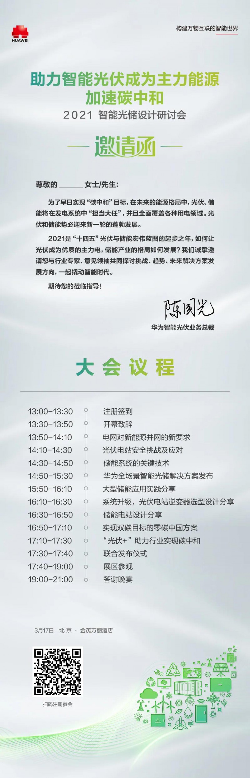 2021是“十四五”光伏與儲能宏偉藍(lán)圖的起步之年,讓光伏發(fā)電可儲可控,已成為能源轉(zhuǎn)型的必然選擇。如何助力智能光伏成為主力能源,促進(jìn)儲能、光伏產(chǎn)業(yè)協(xié)同良性發(fā)展,是實現(xiàn)我國碳中和目標(biāo)的重中之重。為了盡快迎接零碳時代的到來,3月17日,2021智能光儲設(shè)計研討會即將在北京舉辦,掃描圖片下方二維碼即可報名參會!