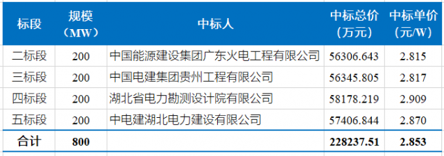 該項(xiàng)目EPC中標(biāo)價格在2.81~2.91元/W之間,如下表所示。