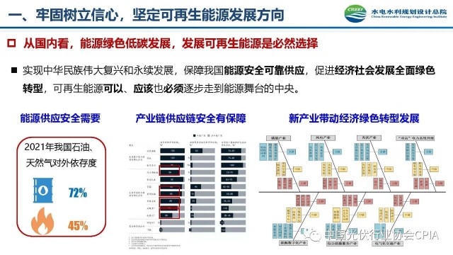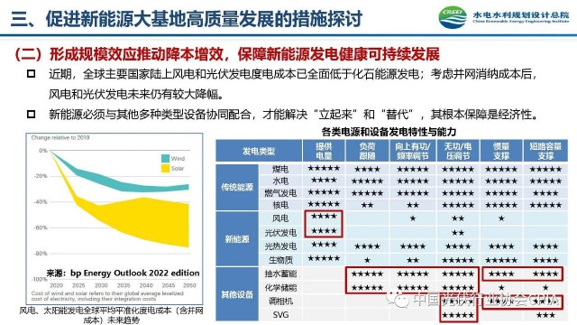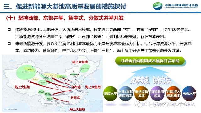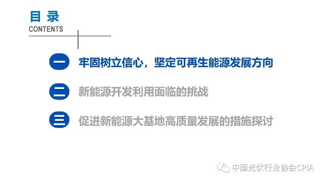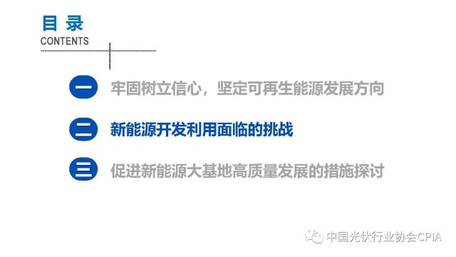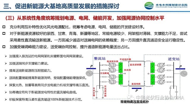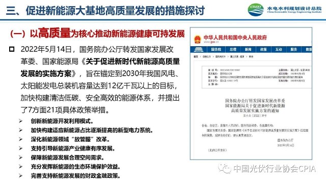 2022年12月1日,由中國光伏行業(yè)協(xié)會主辦的2022中國光伏行業(yè)年度大會暨(滁州)光伏高質(zhì)量發(fā)展高峰論壇在安徽滁州成功召開。水電水利規(guī)劃設(shè)計(jì)總院新能源部副主任王躍峰作多措并舉促進(jìn)新能源大基地高質(zhì)量建設(shè)與發(fā)展的報(bào)告。王主任指出了新能源開發(fā)面臨的五點(diǎn)挑戰(zhàn),并提出了促進(jìn)新能源大基地高質(zhì)量發(fā)展的十條措施。