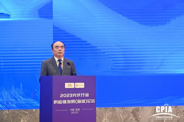 2023年7月19日,由中國(guó)光伏行業(yè)協(xié)會(huì)、宣城市人民政府主辦的“2023光伏行業(yè)供應(yīng)鏈發(fā)展(宣城)論壇”在安徽宣城順利舉行。中國(guó)光伏行業(yè)協(xié)會(huì)理事長(zhǎng)曹仁賢出席論壇并致辭。