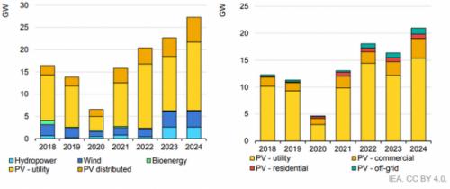 2022年,印度安裝的公用事業(yè)規(guī)模的光伏系統(tǒng)裝機(jī)容量(主要由拍賣授予的容量組成)達(dá)到創(chuàng)紀(jì)錄的14GW,占該國(guó)可再生能源裝機(jī)容量增長(zhǎng)的三分之二以上。然而,到2023年,較低的拍賣量和供應(yīng)鏈挑戰(zhàn)表明,這一增長(zhǎng)可能會(huì)放緩近20%,而2024年可能會(huì)復(fù)蘇。