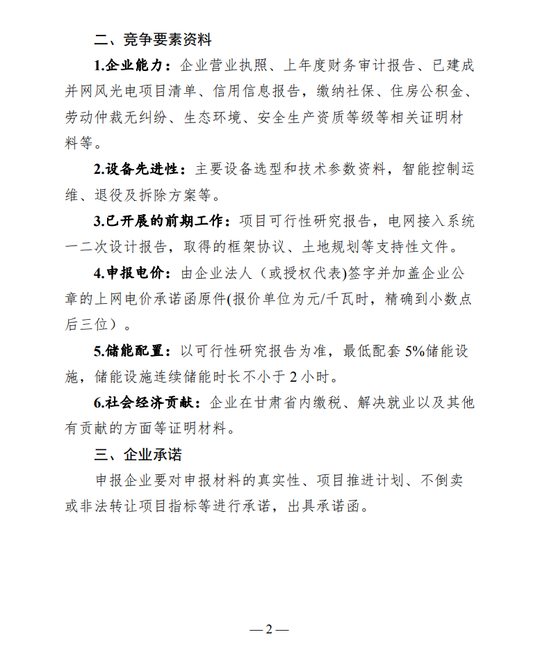 依據(jù)企業(yè)提交的資料,對(duì)報(bào)名企業(yè)從企業(yè)能力、設(shè)備先進(jìn)性、已開(kāi)展前期工作、申報(bào)電價(jià)、儲(chǔ)能配置、社會(huì)經(jīng)濟(jì)貢獻(xiàn)等方面進(jìn)行評(píng)審,擇優(yōu)確定項(xiàng)目業(yè)主。