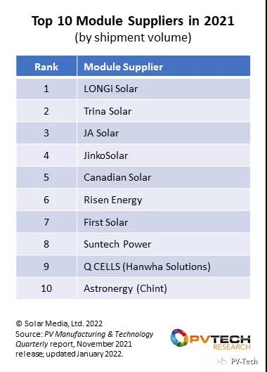 原標題:最新!2021年全球Top10光伏組件供應商排名