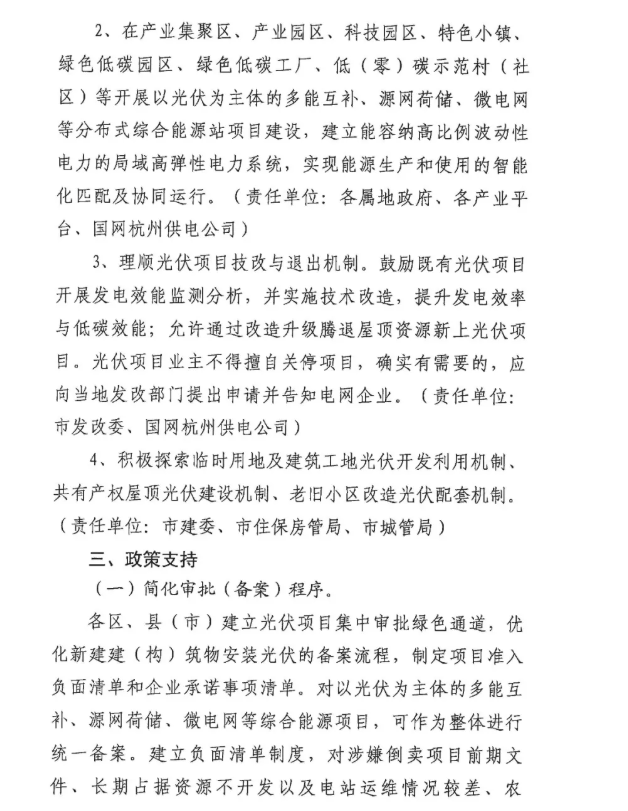 文件提到:除使用財(cái)政資金或以財(cái)政資金為主的光伏項(xiàng)目外,在2021-2025年期間并網(wǎng)的光伏項(xiàng)目(以2021年1月1日為起點(diǎn)計(jì)),待其發(fā)電滿(mǎn)12個(gè)月后,按0.2元/瓦標(biāo)準(zhǔn)給予一次性建設(shè)補(bǔ)貼。主城區(qū)(上城、拱墅、西湖、濱江)的光伏補(bǔ)貼資金由市級(jí)財(cái)政負(fù)責(zé)落實(shí);其他地區(qū)由屬地財(cái)政及市級(jí)財(cái)政按70%、30%承擔(dān)。(牽頭單位:市財(cái)政局、各屬地政府)