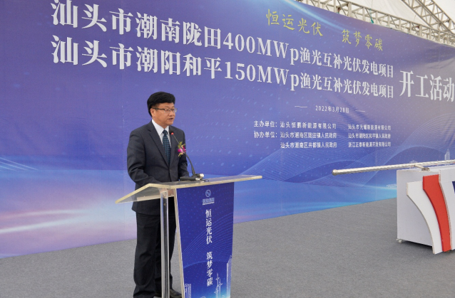 現(xiàn)代能源集團(tuán)肖立總經(jīng)理在致辭中表示,汕頭地區(qū)發(fā)展光伏產(chǎn)業(yè)具有得天獨厚的天然優(yōu)勢,隴田、和平漁光互補光伏發(fā)電項目將助力汕頭地區(qū)加快構(gòu)建清潔低碳、安全高效的現(xiàn)代能源體系,為當(dāng)?shù)貪O業(yè)增效、漁民增收、農(nóng)村增綠,推動美麗鄉(xiāng)村再升級做出重要貢獻(xiàn)。
