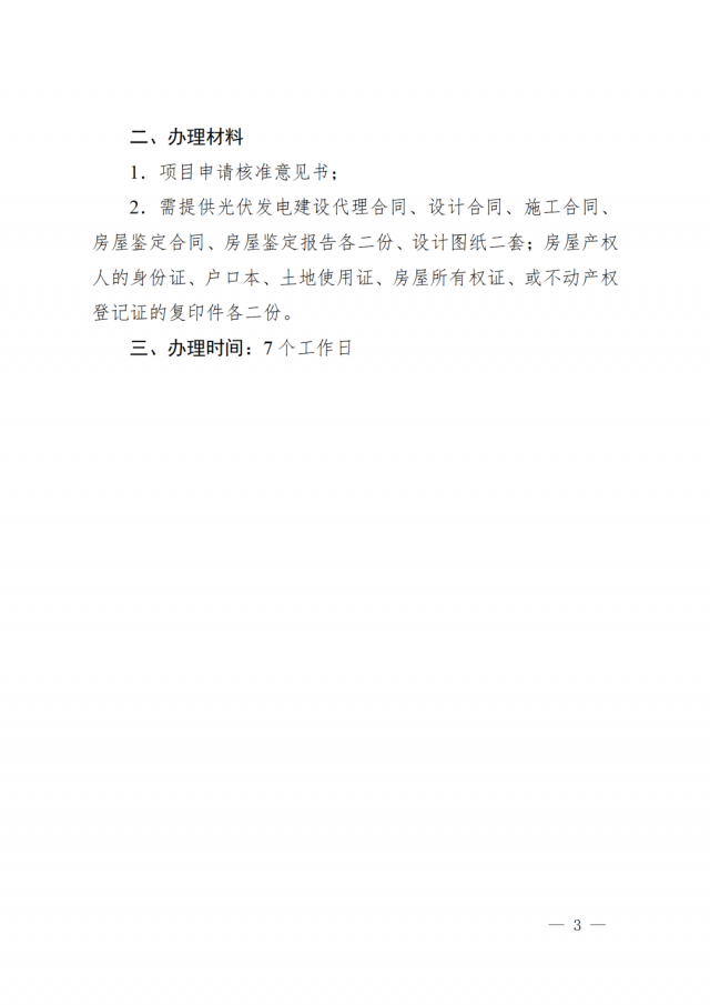 (7)分布式光伏發(fā)電項(xiàng)目,必須履行備案、設(shè)計(jì)、施工和驗(yàn)收程序。戶用分布式光伏發(fā)電項(xiàng)目驗(yàn)收合格、并網(wǎng)接入后,由縣供電公司直接登記備案。