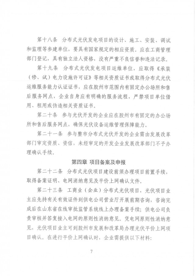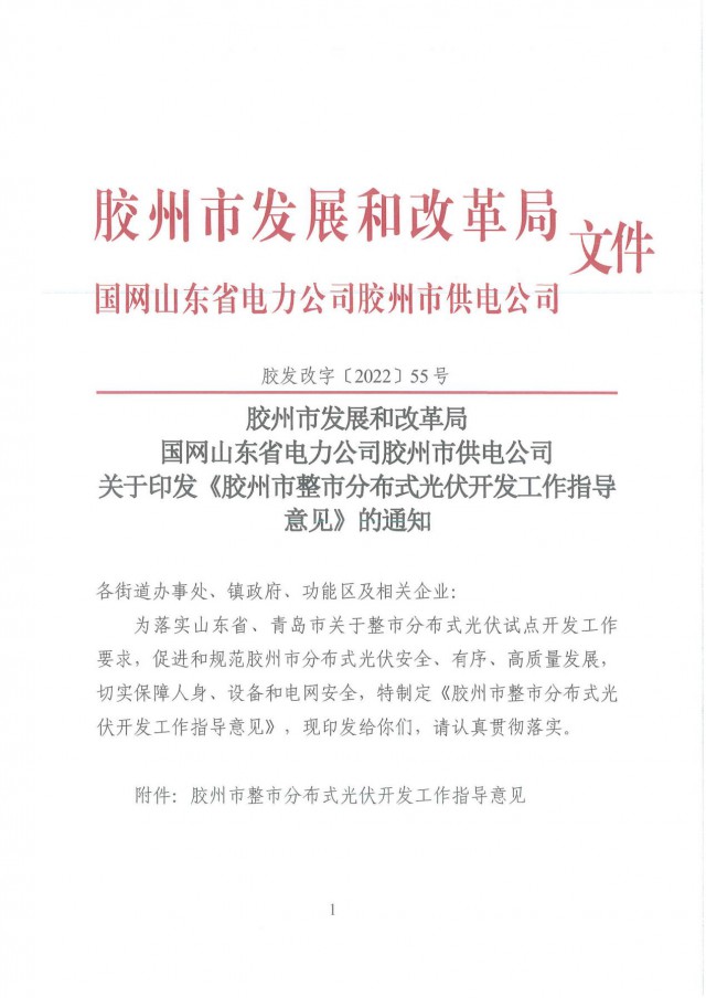 同時(shí)圍繞新型電力系統(tǒng)構(gòu)建,打造“綠色低碳”新膠州,鼓勵(lì)“光伏+工業(yè)”“光伏+農(nóng)業(yè)”、“光伏+儲(chǔ)能”等多種形式的“光伏+產(chǎn)業(yè)”發(fā)展,積板推進(jìn)“農(nóng)村新能源合作社”、“分布式光伏示范村”、“分布式光伏示范園區(qū)”、“分布式光伏示范企業(yè)”的建設(shè),形成可復(fù)制、可推廣的經(jīng)驗(yàn)。高效推進(jìn)膠州市分布式光伏建設(shè)發(fā)展,為推進(jìn)分布式光伏規(guī)?;_(kāi)發(fā)工作提供“膠州模式”。