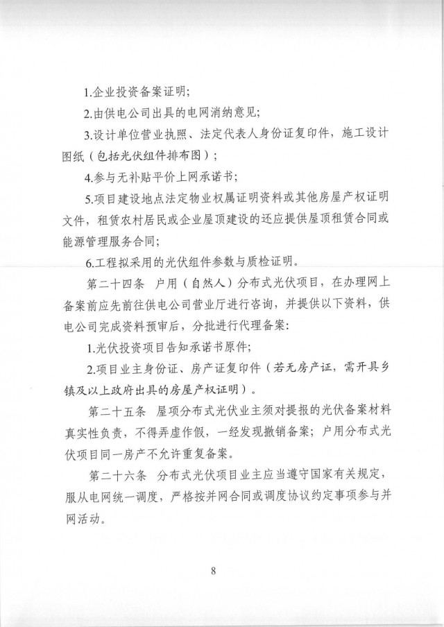 對(duì)于租用他人屋頂以營(yíng)利性質(zhì)為目的的光伏項(xiàng)目,按照非自然人受理;租用他人屋頂以營(yíng)利性質(zhì)為目的的光伏項(xiàng)目未按非自然人辦理的一經(jīng)發(fā)現(xiàn),取消并網(wǎng)資格并撤銷(xiāo)項(xiàng)目備案,造成財(cái)產(chǎn)損失由項(xiàng)目開(kāi)發(fā)、建設(shè)企業(yè)自行承擔(dān)。