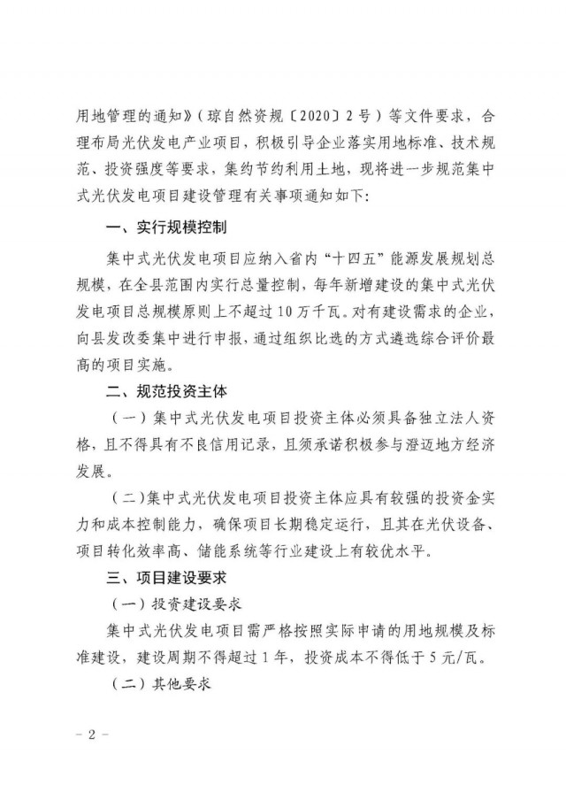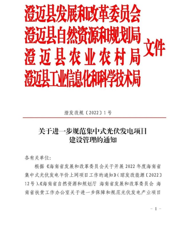 9月28日,澄邁縣政府網(wǎng)發(fā)布“關(guān)于進(jìn)一步規(guī)范集中式光伏發(fā)電項(xiàng)目建設(shè)管理的通知”。