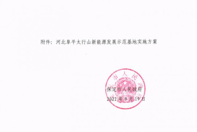 你市報(bào)來的《關(guān)于對〈河北阜平太行山新能源發(fā)展示范基地實(shí)施方案〉進(jìn)行批復(fù)的函》收悉。經(jīng)研究,函復(fù)如下: