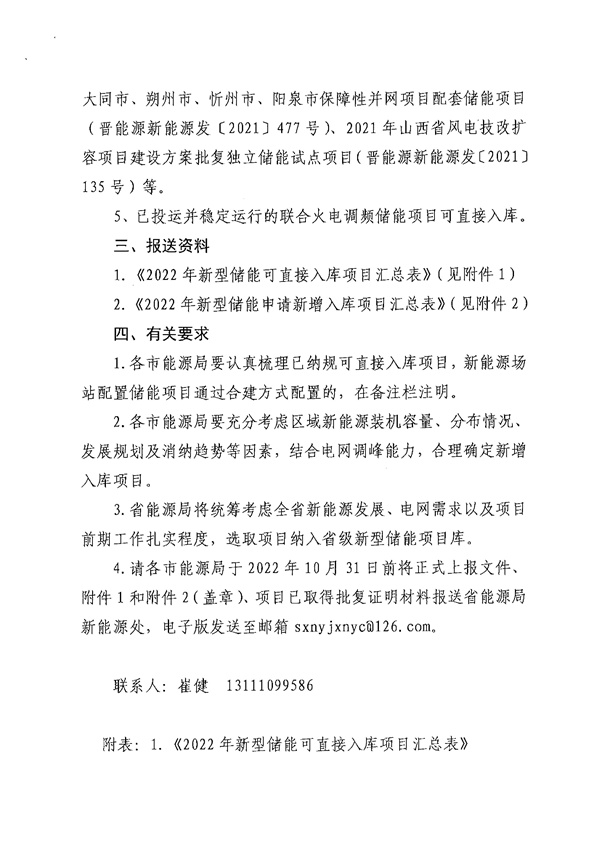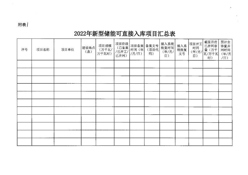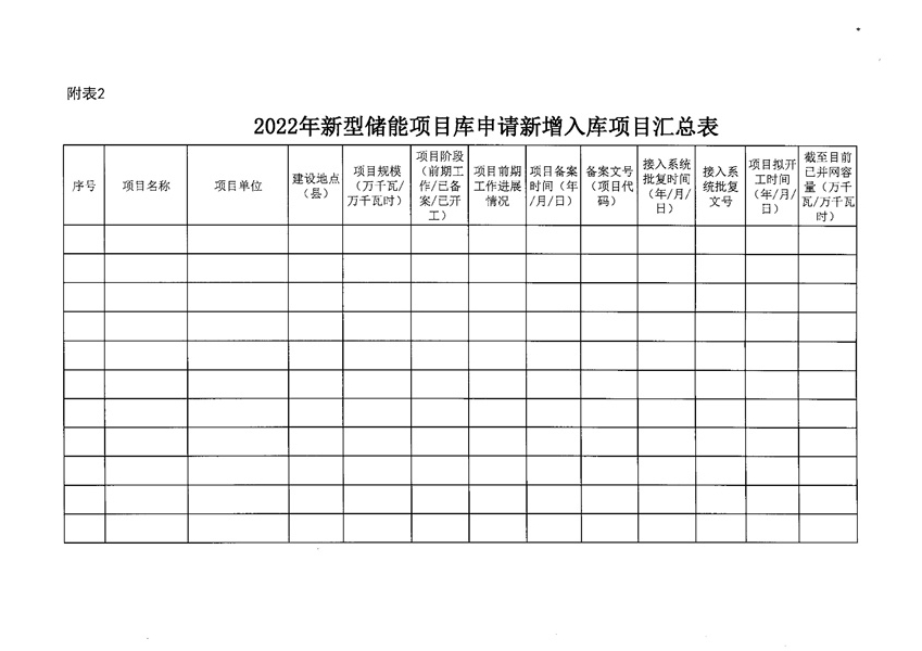 請(qǐng)各企業(yè)認(rèn)真閱讀省能源局通知內(nèi)容,并于10月26日前將《2022年新型儲(chǔ)能可直接入庫項(xiàng)目匯總表》、《2022年新型儲(chǔ)能申請(qǐng)新增入庫項(xiàng)目匯總表》及相關(guān)證明材料的電子版(加蓋企業(yè)公章的PDF版和可編輯Excel版)發(fā)送至郵箱:[email protected],逾期不再受理。