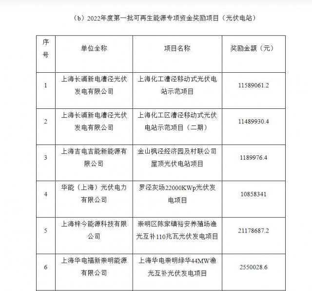 11月17日,上海市發(fā)改委發(fā)布了《上海市2022年度第一批可再生能源專項(xiàng)資金撥付計(jì)劃(草案)公示》。公示顯示,1175個(gè)分布式光伏項(xiàng)目將發(fā)放合計(jì)164093630.24元補(bǔ)貼,21757個(gè)居民分布式項(xiàng)目將獲得72711600.34元獎(jiǎng)勵(lì)金額。