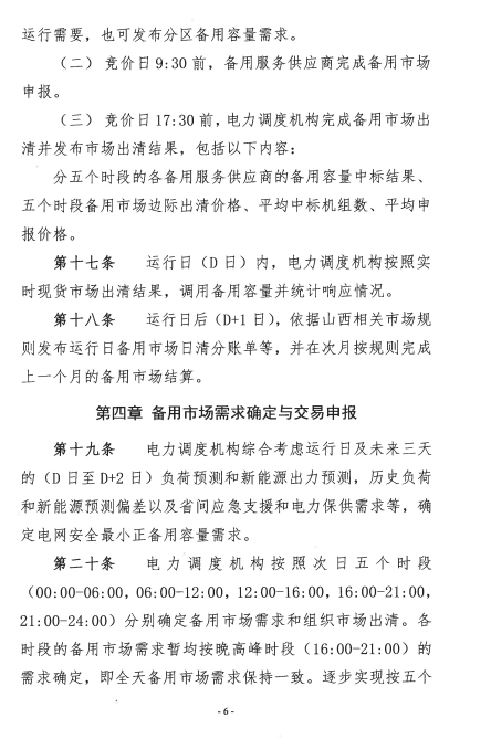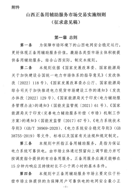 1月13日,山西能源監(jiān)管辦發(fā)布關于征求《山西正備用輔助服務市場交易實施細則(征求意見稿)》意見的函,文件指出,備用服務供應商:執(zhí)行備用市場交易結果,能夠響應調度指令,調整發(fā)電出力(或用電負荷)提供備用服務的市場主體,包括參與現(xiàn)貨市場的燃煤機組和燃氣機組,省調直調的新型儲能電站,虛擬電廠、可控負荷,以及具備調節(jié)能力的風電場、光伏電站等。新能源企業(yè)和電力用戶開展技術改造,具備穩(wěn)定提供備用輔助服務的條件后,需通過相關性能測試。