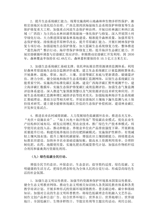 因地制宜發(fā)展農(nóng)林生物質(zhì)發(fā)電,加快構(gòu)建以發(fā)電為主的生活垃圾無害化處理體系,積極開展生物天然氣示范應(yīng)用。統(tǒng)籌推進(jìn)氫能“制儲輸用”全產(chǎn)業(yè)鏈,推動氫能在工業(yè)、交通等領(lǐng)域應(yīng)用。積極與能源資源富集省份合作,大力爭取青海、西藏、甘肅等清潔能源基地送電廣西。進(jìn)一步完善可再生能源電力消納保障機(jī)制。到2030年,風(fēng)電、太陽能發(fā)電總裝機(jī)容量達(dá)到7000萬千瓦左右。