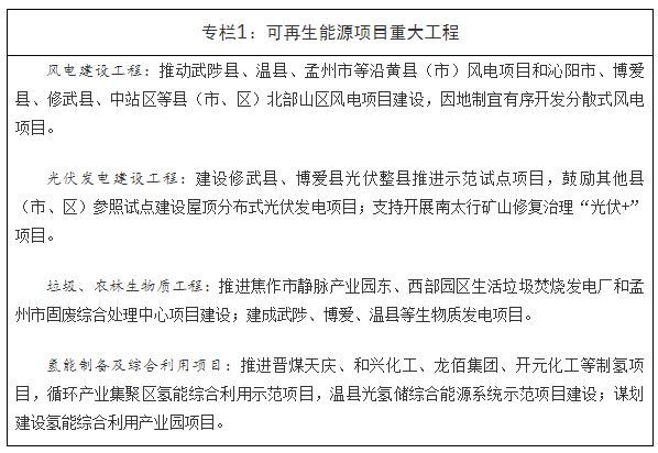加大風(fēng)能開發(fā)力度。堅(jiān)持風(fēng)電發(fā)展與生態(tài)環(huán)境保護(hù)有機(jī)統(tǒng)一,堅(jiān)守生態(tài)環(huán)保底線,統(tǒng)籌考慮全市風(fēng)能資源、自然保護(hù)、電網(wǎng)消納等因素,積極推動風(fēng)能開發(fā)利用。加快推進(jìn)馬村區(qū)華潤、溫縣潔源等60萬千瓦存量風(fēng)電項(xiàng)目建設(shè),統(tǒng)籌謀劃武陟縣、溫縣、孟州市等縣(市)風(fēng)力資源,打造沿黃百萬千瓦風(fēng)電走廊,力爭到2025年全市風(fēng)電并網(wǎng)容量累計(jì)達(dá)到120萬千瓦以上。