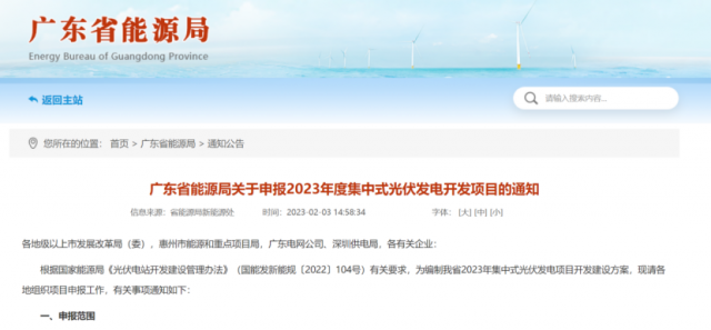 廣東省能源局關(guān)于申報2023年度集中式光伏發(fā)電開發(fā)項目的通知