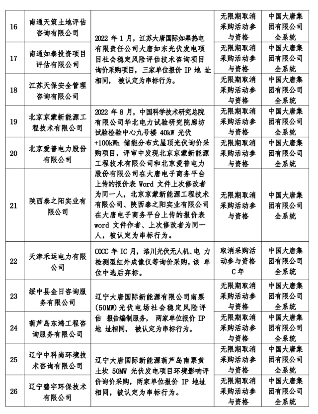 3月1日,大唐集團發(fā)布2023年第2批關(guān)于供應商不良行為處理情況的公告,共有699家企業(yè)被點名。其中,包含12個光伏項目招標相關(guān)的26家供應商被點名。