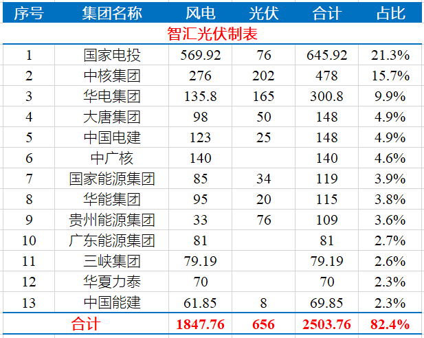 表:貴州第二批12.6GW新能源項(xiàng)目投資企業(yè)情況(單位:萬(wàn)千瓦)