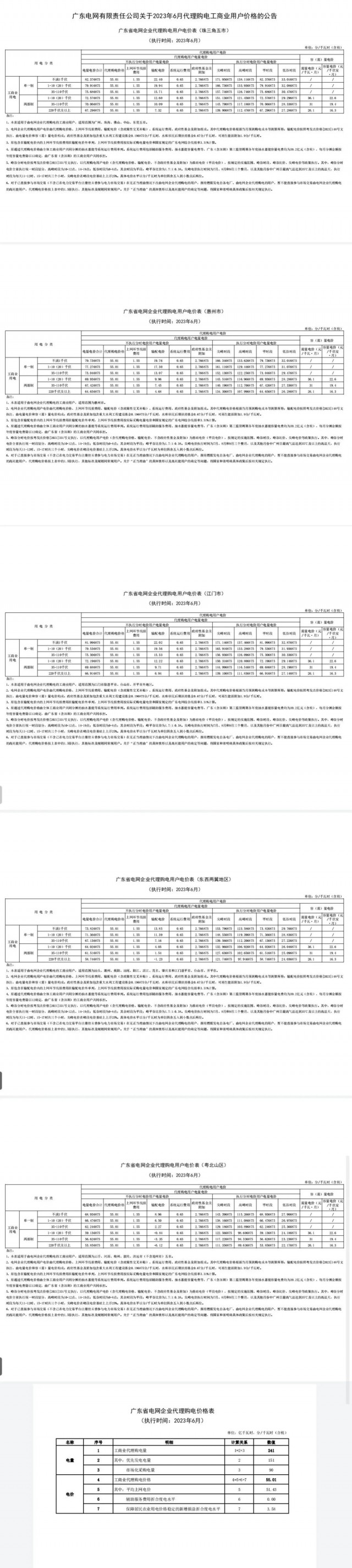 廣東全省各地區(qū)6月份代理購電價(jià)格均有小幅的下跌,近日發(fā)布《廣東省發(fā)展改革委轉(zhuǎn)發(fā)國家發(fā)展改革委關(guān)于第三監(jiān)管周期省級電網(wǎng)輸配電價(jià)及有關(guān)事項(xiàng)的通知》(粵發(fā)改價(jià)格〔2023〕148號)。新的省級電網(wǎng)輸配電價(jià)自2023年6月1日起執(zhí)行。即6月用電產(chǎn)生電費(fèi)(7月發(fā)行電費(fèi))按新電價(jià)政策執(zhí)行。
