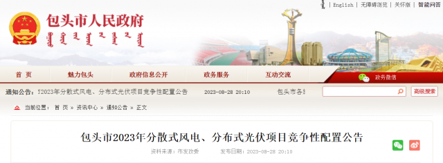 包頭市2023年分散式風(fēng)電、分布式光伏項目競爭性配置公告