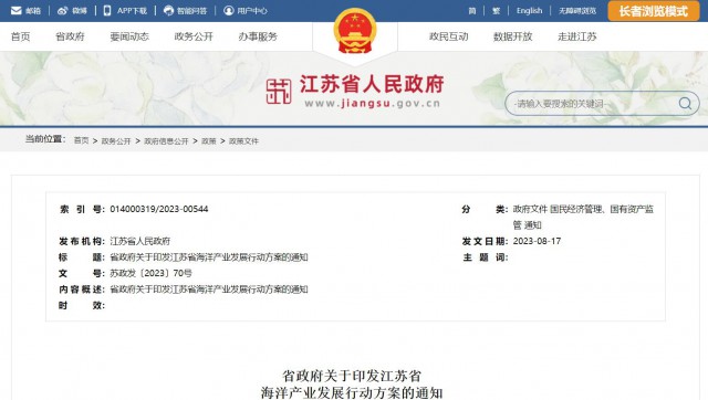 省政府關(guān)于印發(fā)江蘇省海洋產(chǎn)業(yè)發(fā)展行動方案的通知