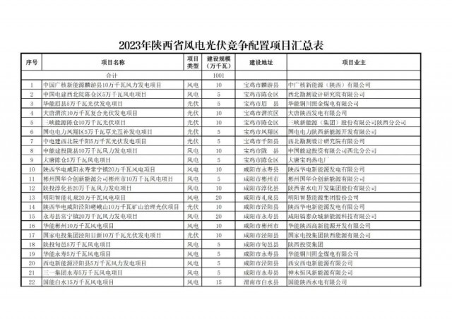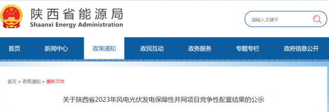 現(xiàn)將2023年陜西省風電、光伏發(fā)電保障性并網(wǎng)項目競爭性配置結果進行公示。公示時間為2023年8月25日至2023年8月31日,如有異議,請在公示期內(nèi)以書面實名反映。