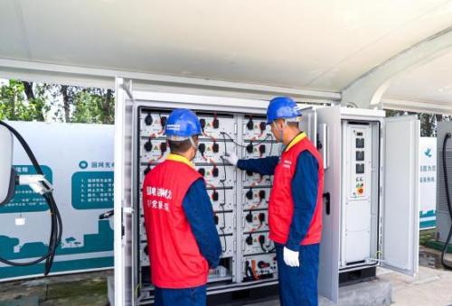 9月5日,國(guó)網(wǎng)四平供電公司員工在調(diào)試檢查光儲(chǔ)微電網(wǎng)儲(chǔ)能箱和配套設(shè)施。劉宏宇攝
