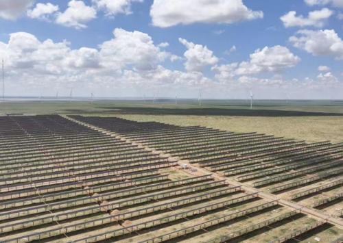阿旗京能20萬(wàn)千瓦光伏項(xiàng)目,總裝機(jī)容量200MW(配置30MW/60MWh儲(chǔ)能設(shè)施),按照牧光互補(bǔ)的模式進(jìn)行建設(shè),采用固定式高支架方案,安裝535Wp單晶硅雙面雙玻電池組件374400塊,225kW的組串式逆變器896臺(tái),35kV集電線路10回,與30萬(wàn)千瓦風(fēng)電項(xiàng)目共用1座220kV升壓站,以1回220kV送出線路(長(zhǎng)度22km)接至查干淖爾電廠500kV變電站,總投資11.5億元,屬于錫盟400萬(wàn)千瓦特高壓新能源基地項(xiàng)目之一。