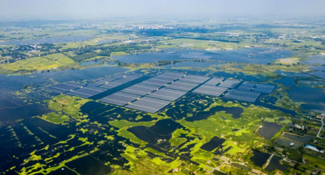 山東省濰坊市壽光市羊口鎮(zhèn)是百年曬鹽之地,這里的鹽堿地改良一直是個(gè)難題。國家電投壽光官臺(tái)營子150兆瓦漁光互補(bǔ)發(fā)電項(xiàng)目通過廢舊低效鹽田水產(chǎn)養(yǎng)殖與光伏發(fā)電相結(jié)合,在水面上方架設(shè)光伏板陣列、板下水域養(yǎng)殖魚蝦,實(shí)現(xiàn)了土地資源的節(jié)約集約高效利用。經(jīng)測算,該項(xiàng)目每年可提供清潔電能約2.52億千瓦時(shí),替代標(biāo)準(zhǔn)煤7.7萬噸,減排二氧化碳21萬噸。