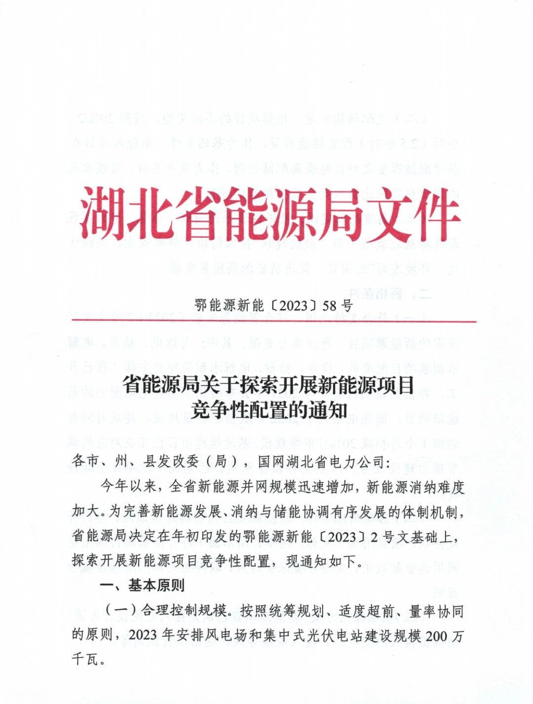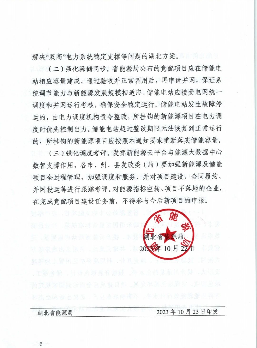 10月23日,湖北省能源局印發(fā)《關(guān)于探索開展新能源項(xiàng)目競爭性配置的通知》,擬安排2GW風(fēng)、光項(xiàng)目指標(biāo),并以儲能配置比例作為競爭優(yōu)選條件。
