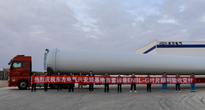 近日,大唐吉林前郭20萬千瓦風(fēng)電項(xiàng)目首套ENBL-G型葉片在東方風(fēng)電興安盟制造基地成功產(chǎn)出并發(fā)運(yùn),項(xiàng)目計劃交付22套ENBL-G型葉片。