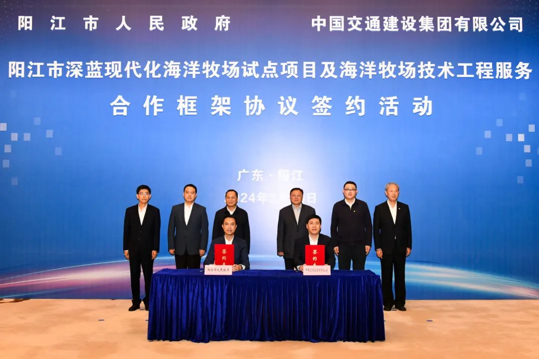中交集團黨委書記、董事長王彤宙表示,中交集團深入貫徹落實黨的二十大精神,在國家重大戰(zhàn)略領(lǐng)域先行示范,充分發(fā)揮大交通、大城市、國際化、江河湖海領(lǐng)域的獨特優(yōu)勢,在推進中國式現(xiàn)代化上展現(xiàn)中交新?lián)?dāng)、新作為。中交集團十分重視陽江市場,深度融入和服務(wù)陽江經(jīng)濟社會發(fā)展,雙方合作取得了一系列務(wù)實成果,希望雙方以此次簽署合作框架協(xié)議為契機,就海洋牧場試點項目開展更深層次合作,加快推動項目落地,為廣東發(fā)展海洋牧場、打造“藍色糧倉”邁出更加堅實步伐。中交集團將進一步發(fā)揮自身優(yōu)勢,推動雙方在基礎(chǔ)設(shè)施建設(shè)、城市更新、現(xiàn)代綜合交通等領(lǐng)域進一步深化合作,助力陽江經(jīng)濟社會高質(zhì)量發(fā)展。