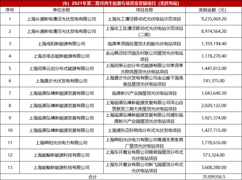 上海市2021年度第二批可再生能源專項(xiàng)資金撥付計(jì)劃(草案)公示