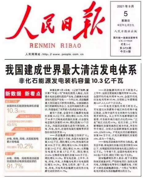 我國(guó)清潔低碳化進(jìn)程不斷加快,水電、風(fēng)電、光伏、在建核電裝機(jī)規(guī)模等多項(xiàng)指標(biāo)保持世界第一。