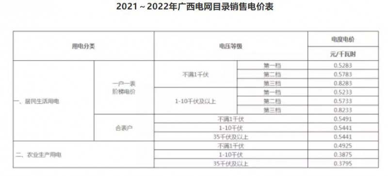 2021~2022年廣西電網(wǎng)輸配電價表