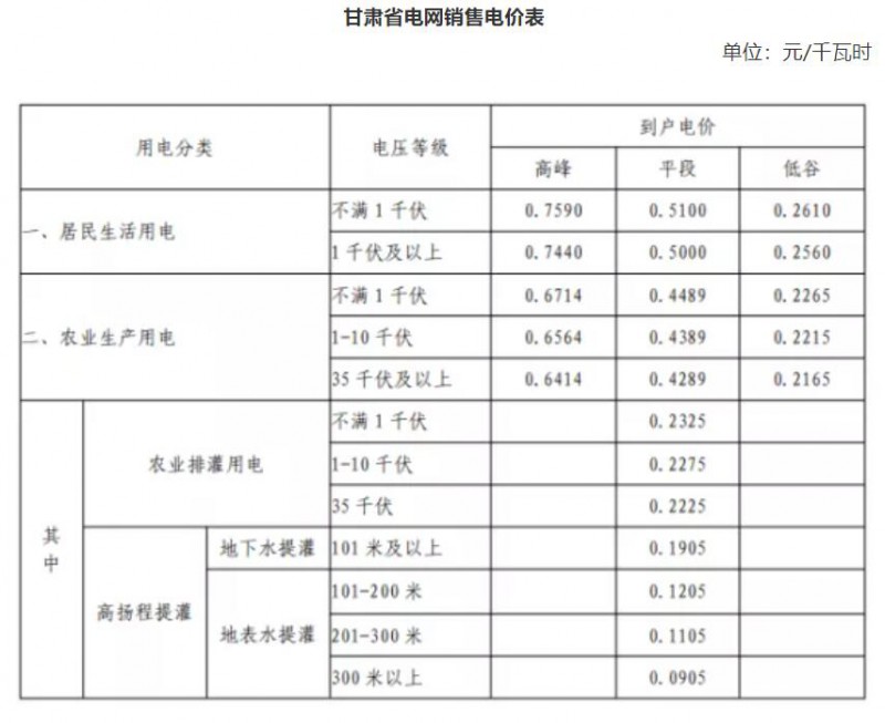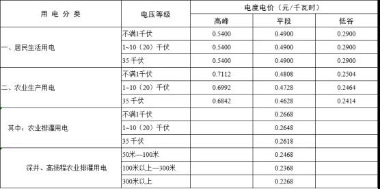 備注:農(nóng)業(yè)排灌、抗災(zāi)救災(zāi)用電,按上表所列分類電價降低2分錢(農(nóng)網(wǎng)還貸資金)執(zhí)行。