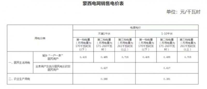 備注:1、農(nóng)村低壓各類用電按上表合計欄電價執(zhí)行,其中含維管費。2、一戶一表居民生活用電二檔、三檔電價,在一檔電價基礎(chǔ)上每千瓦時分別提高0.05元和0.3元。