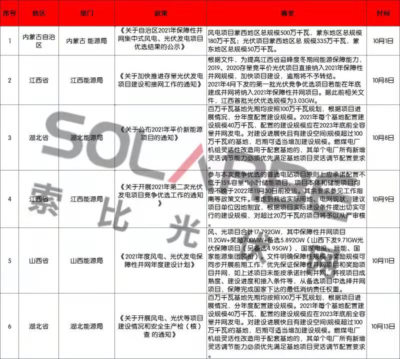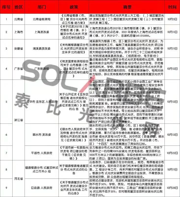 那么,10月份的光伏行業(yè)又有哪些政策值得關(guān)注呢?下面來看索比光伏網(wǎng)的梳理。