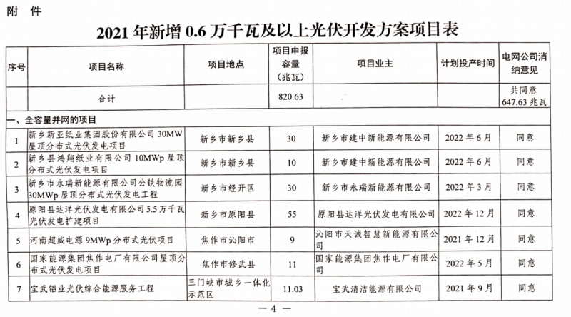 11月5日,河南省發(fā)改委下發(fā)《關(guān)于下達(dá) 2021年新增0.6萬千瓦及以上光伏項(xiàng)目開發(fā)方案的通知》。文件指出,對于不新增用地、利用固定建筑物及其附屬場所建設(shè)的光伏項(xiàng)目,不限申報(bào)規(guī)模!