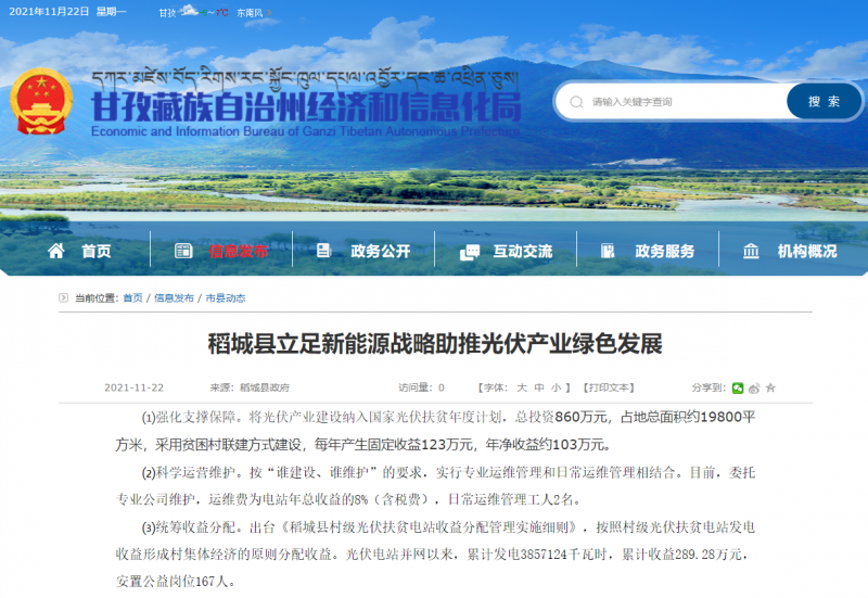 ⑴強化支撐保障。將光伏產(chǎn)業(yè)建設納入國家光伏扶貧年度計劃,總投資860萬元,占地總面積約19800平方米,采用貧困村聯(lián)建方式建設,每年產(chǎn)生固定收益123萬元,年凈收益約103萬元。