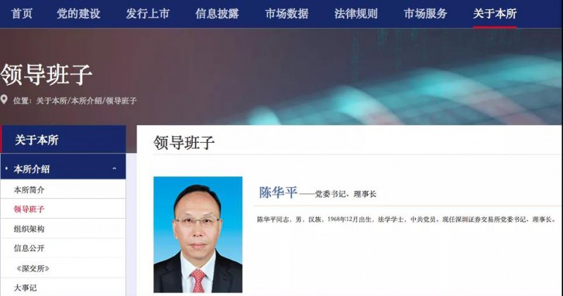 同時,深交所官網(wǎng)上的領導班子介紹信息已更新。官網(wǎng)顯示,陳華平,男,漢族,1968年12月出生,法學學士,中共黨員?,F(xiàn)任深圳證券交易所黨委書記、理事長。