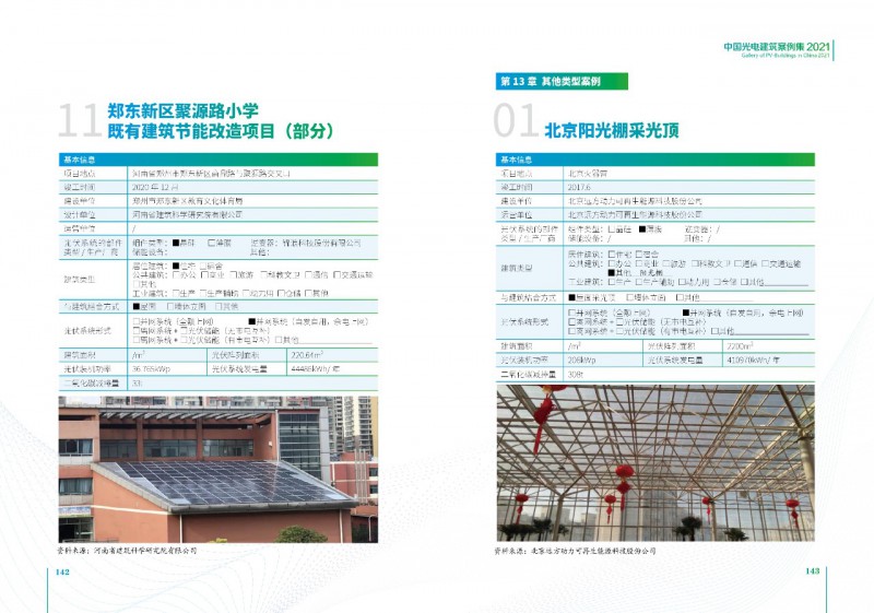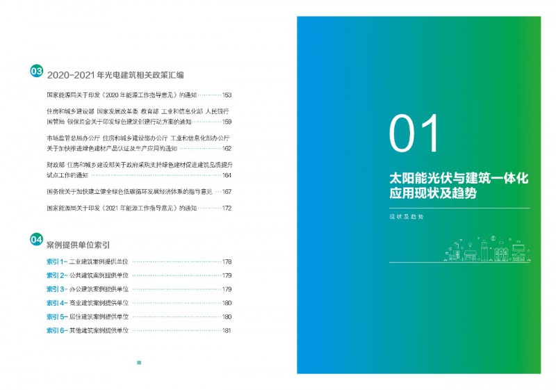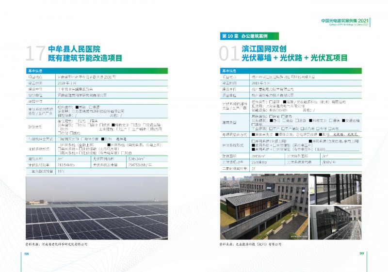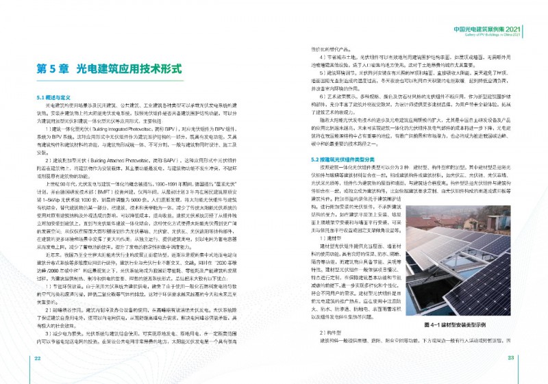 《案例集》分析和總結(jié)我國(guó)光電建筑應(yīng)用現(xiàn)狀、國(guó)內(nèi)外發(fā)展趨勢(shì)、技術(shù)要點(diǎn)等內(nèi)容,為行業(yè)發(fā)展提供基礎(chǔ)數(shù)據(jù)。經(jīng)過(guò)案例篩選,共收錄了105項(xiàng)光電建筑典型案例,涵蓋了我國(guó)工業(yè)建筑、公共建筑、辦公建筑、商業(yè)建筑、居住建筑及其他建筑類(lèi)型光伏應(yīng)用,為光伏在建筑上大規(guī)模應(yīng)用提供了依據(jù)和參考價(jià)值。