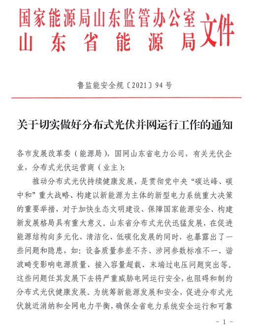 原標題:4月1日起執(zhí)行!國家能源局山東監(jiān)管辦公室關(guān)于切實做好分布式光伏并網(wǎng)運行工作的通知