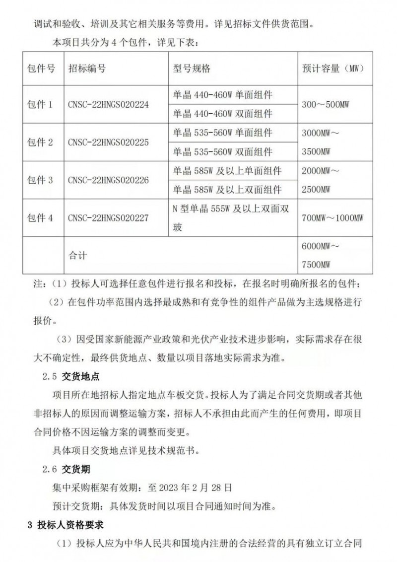 值得一提的是,此次國(guó)電投以及在2月14日公開招標(biāo)的中核匯能,招標(biāo)標(biāo)段均以組件的功率進(jìn)行了劃分,這是相對(duì)領(lǐng)先且細(xì)致的劃分方式。