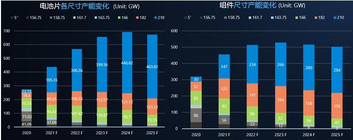 根據(jù)PVinfolink預(yù)測(cè),210組件將逐步成為市場(chǎng)的主流技術(shù),2022年 210尺寸電池及組件產(chǎn)能分別達(dá)到306GW/234GW。